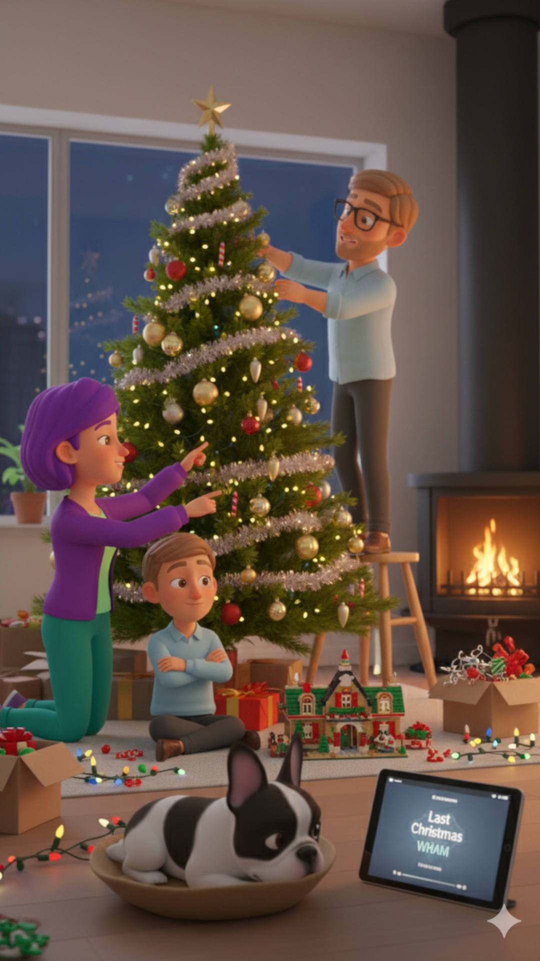 “Oké, genoeg nu. We gaan de kerstboom optuigen.”