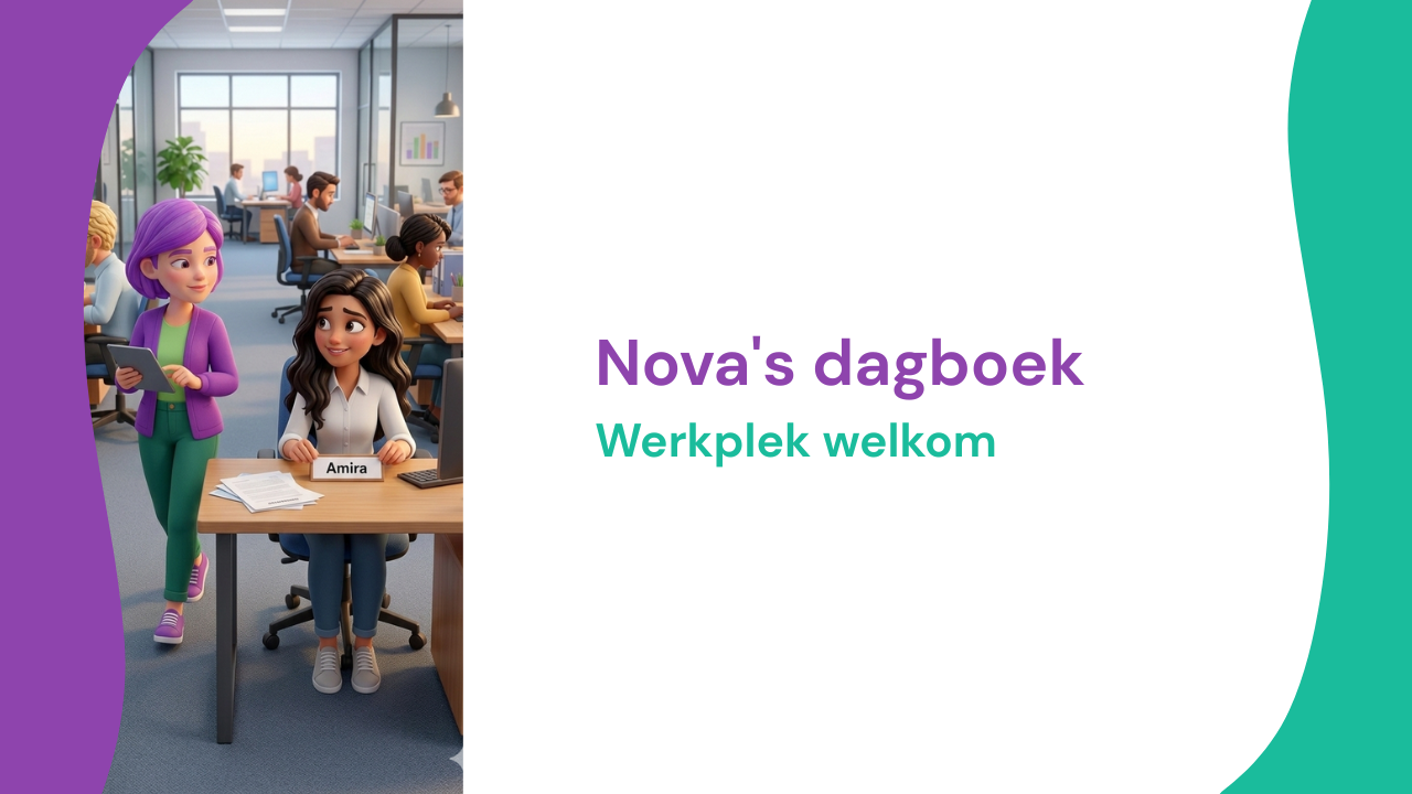 Amira zit aan een bureau dat nog een beetje vreemd aanvoelt met een nieuw toetsenbord, een onbekende stoel, een eenzaam scherm dat te hoog staat en wacht op een laptop. Ze glimlacht naar iedereen die langsloopt, maar haar ogen zoeken iets herkenbaars. Nova herkent die blik. Nieuw zijn is spannend, ook al ben je aangenomen met complimenten en vertrouwen.